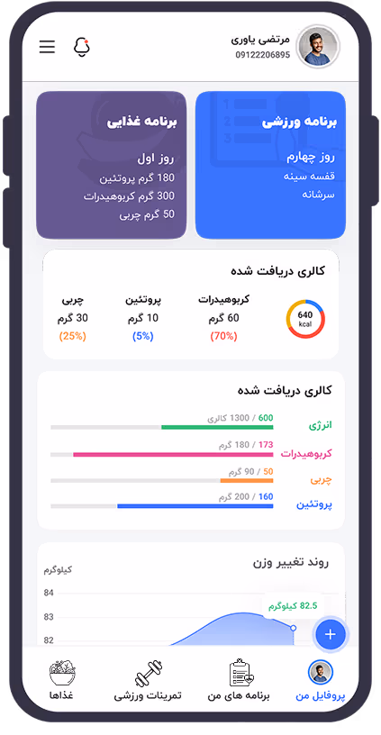 پس از ثبتنام در اپلیکیشن ورزشی فیت بار، میتوانید بهراحتی برنامه غذایی اختصاصی خود را که توسط کارشناسان تغذیه فیت بار طراحی شده است، دریافت کنید.